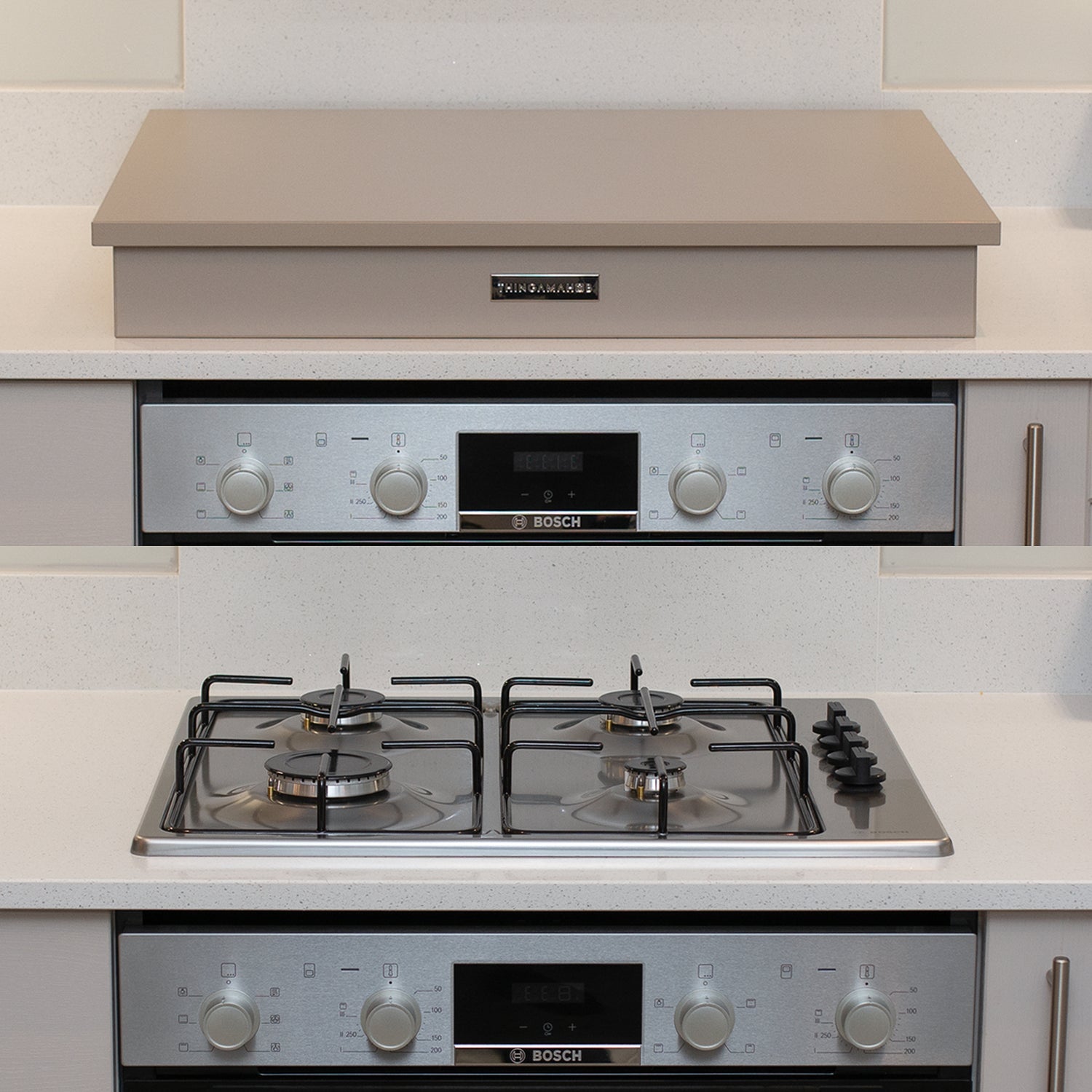 Our electric covers take advantage of not needing as much height clearance between the hob and the cover. This creates a sleek and minimalistic aesthetic to your kitchen's workspace. However, if more height and prominence is your preference you can also use a gas height cover too.