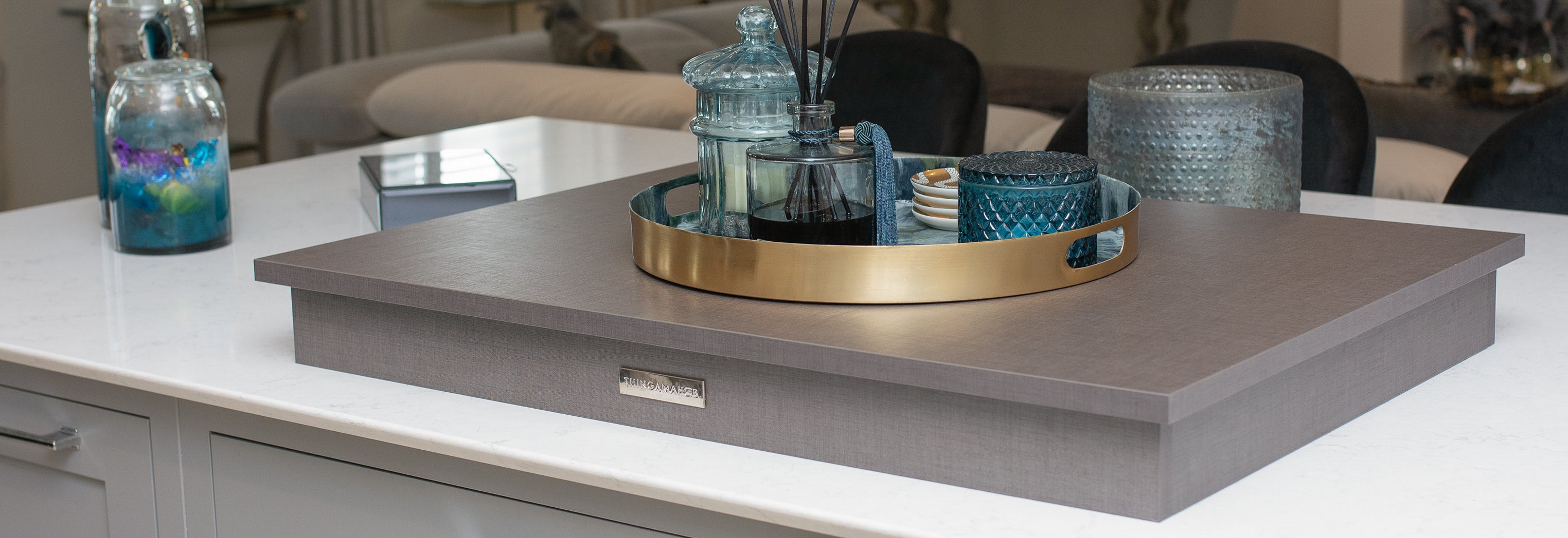 To create a product which is a much aesthetic as it is functional. However small or large your hob is, the aim is to create a useable space which seamlessly complements your kitchen. The Thingamahob is ultimate kitchen accessory to add and transform your kitchen worktop space instantly.