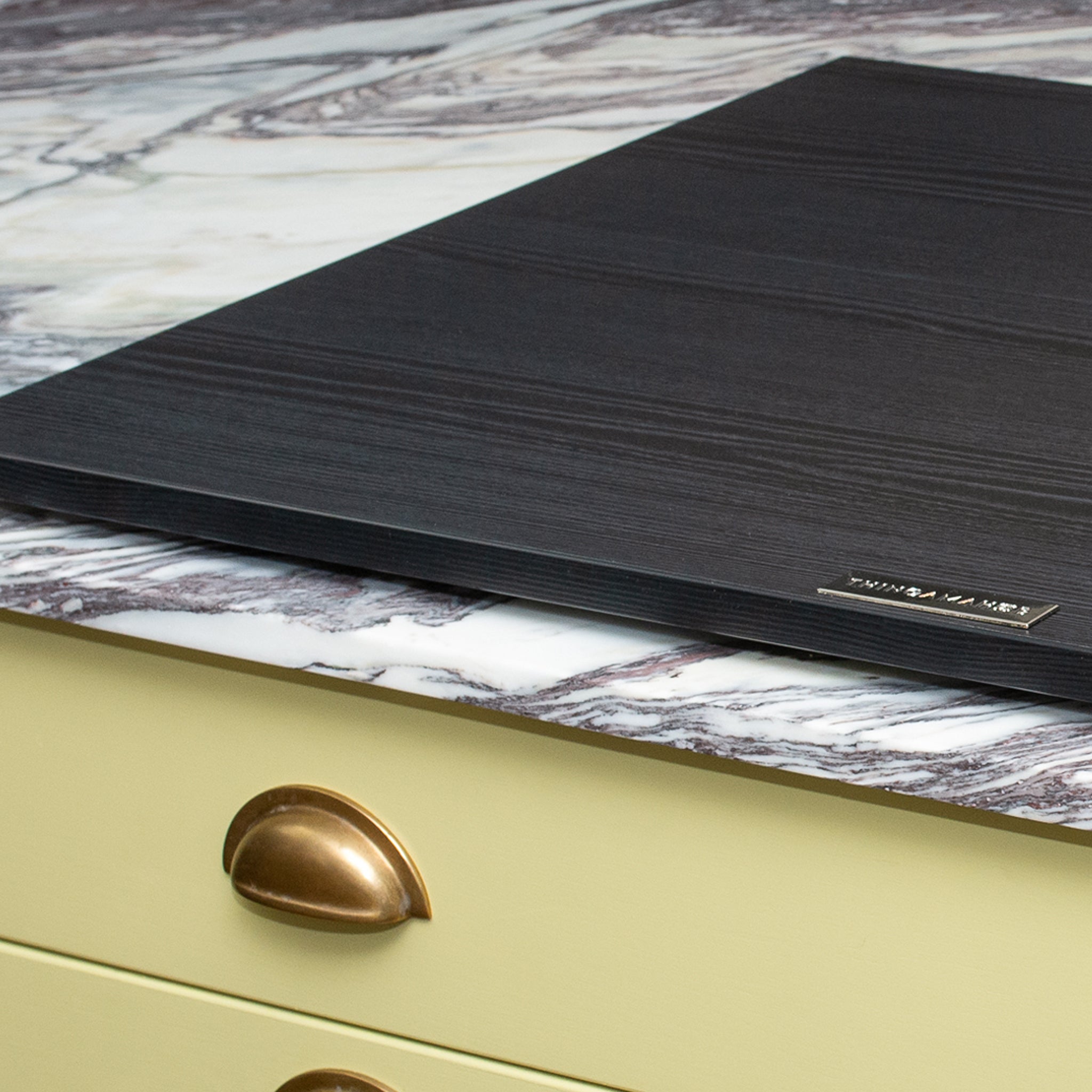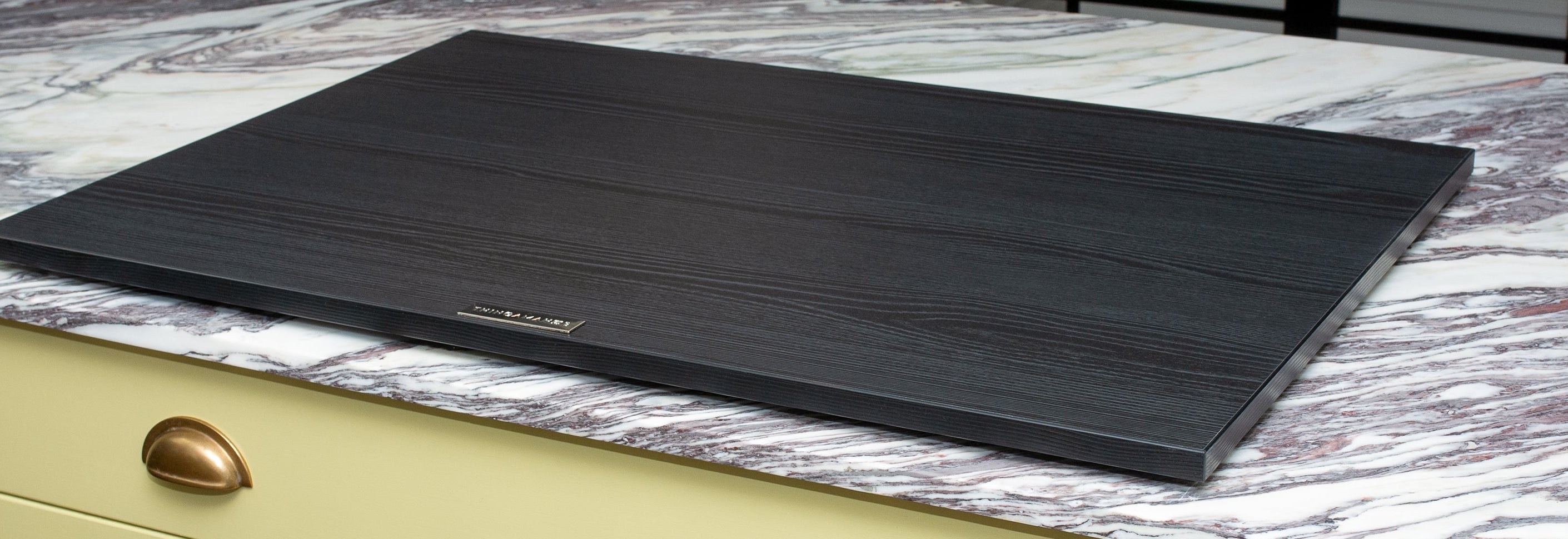 Black oak veneer offers a striking blend of timeless elegance and contemporary design, making it an ideal choice for modern kitchens. Its bold appearance introduces a distinctive edge, while the intricate grain pattern enhances the overall aesthetic with added class and texture. This masterpiece not only elevates the kitchen's visual appeal but also serves as a durable and stylish addition to any culinary space. Supported by four black metal feet with an anti-slip rubber bottom you can be sure it will rest firmly in its place whilst creating a floating-like illusion over your hob.
